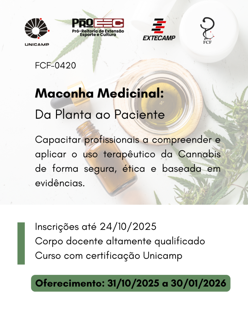 padronização e formulação de produtos à base de Cannabis também será detalhado, cobrindo métodos laboratoriais, controle de qualidade e os